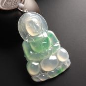 冰种飘翠释迦牟尼翡翠吊坠 尺寸54-36-5毫米