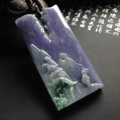 高冰飘花山水翡翠挂件 厚庄大件尺寸59.5*39.5*7.6