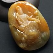 巧雕带色悠然自得 翡翠吊坠 尺寸60-40-11毫米
