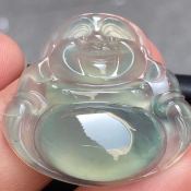 冰种阳绿佛公翡翠吊坠 真金真钻镶嵌