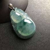 冰种飘花 葫芦翡翠吊坠 白金扣 尺寸40-25-8毫米