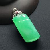 冰种满绿翡翠吊坠 尺寸:22-26-9.3毫米
