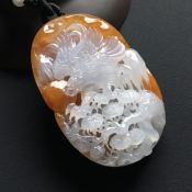 巧雕冰黄大展宏图翡翠吊坠 尺寸:56-36-14.8毫米