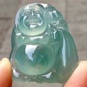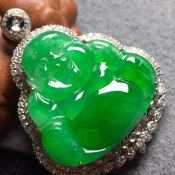 冰种满绿弥勒佛 翡翠挂件 种老色辣 种水足