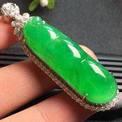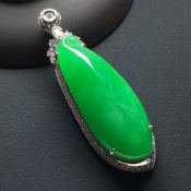冰种阳绿翡翠吊坠 尺寸:59-19-12.8*