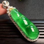 冰种阳绿 葫芦翡翠吊坠 18k金*钻石镶嵌 整体尺寸:48-23.8-15*裸石33.8-20.8-10毫米