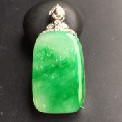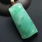 冰种阳绿山水牌翡翠吊坠 18k金镶嵌 大小30.1*19.2*8.3mm