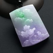 老坑料高冰种飘花 山水牌翡翠吊坠