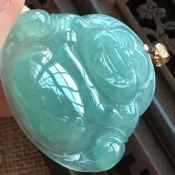 冰糯种蓝水佛公翡翠吊坠 完美无纹裂 尺寸38.3*33.5*6.3
