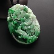 巧雕带色花开富贵翡翠吊坠 尺寸54-40-10毫米