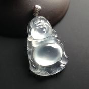 冰玻种荧光站佛 翡翠吊坠 尺寸36-23-8mm