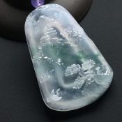 冰飘花翡翠山水牌挂件 尺寸61*36.6*7