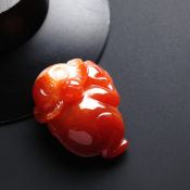 巧雕红翡灵猴吊坠 尺寸31-23-12毫米
