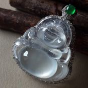 玻璃种晴水佛公翡翠吊坠 尺寸24*23.8*7整体33*26.3*12.5