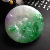 糯冰种椿带彩紫日翡翠挂件 尺寸55-8.5毫米