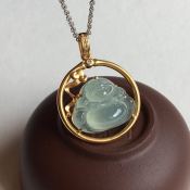 冰种晴水笑佛翡翠吊坠 完美无纹裂