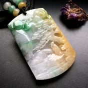 双彩山水牌 翡翠吊坠 尺寸: 57-36-7mm