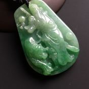 巧雕阳绿鸟语花香 翡翠吊坠 尺寸:60-38-11.5毫米