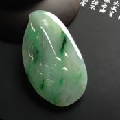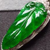 冰帝王绿叶子 翡翠挂件 裸石尺寸34.3*15.3*4