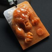巧雕红翡狮子头挂件 尺寸:65-45-15毫米