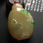 黄加绿女娲补天鼻烟壶翡翠吊坠 尺寸79-50-27毫米