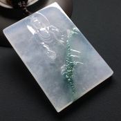 冰种飘花翡翠吊坠 尺寸:67-44-6.6毫米