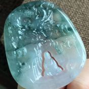 冰糯种飘花神龙护主 翡翠吊坠 尺寸53.3*44.5*6.2
