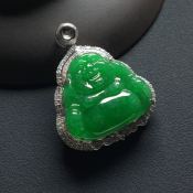 冰糯种满色笑佛 翡翠吊坠 整体尺寸:33-26-9