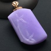 糯种紫罗兰 竹报平安翡翠吊坠 18k金扣 尺寸:44-28.5-8.5毫米