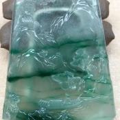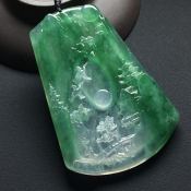 冰种飘绿 山水牌翡翠吊坠 尺寸:75*45*6