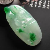 老坑料高冰种飘绿花 山水牌翡翠吊坠