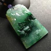 冰种飘绿 山水牌翡翠吊坠 尺寸72-42-6毫米