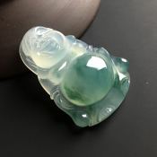 冰种飘花布袋佛 翡翠吊坠 尺寸36-25-6.2毫米