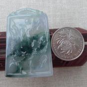 冰种飘花龙马牌 翡翠吊坠 尺寸55-46-7毫米