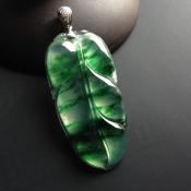 冰种绿底飘花叶子 翡翠挂件 尺寸47-23-5mm