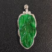辣绿树叶 翡翠挂件 整体尺寸45mm.22mm.8mm