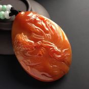 巧雕黄加绿悠然自得 翡翠吊坠 尺寸:55-37-6毫米