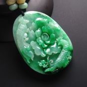 巧雕阳绿花开富贵翡翠吊坠 尺寸56.5-41-11毫米