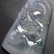 高冰种精品墨翠 大龙牌吊坠 收藏品 尺寸:65.2-45.3-8.2