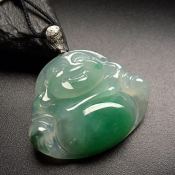 老坑料冰种飘阳底色 弥勒佛翡翠吊坠