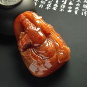 红翡灵猴献瑞 翡翠吊坠尺寸54-33-12毫米