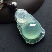 冰糯种满色笑口常开 佛翡翠吊坠 尺寸: 39-42-8mm