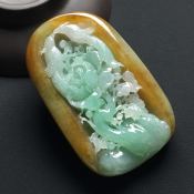 巧雕黄加绿 鸟语花香翡翠吊坠 尺寸:68-42-10.3毫米