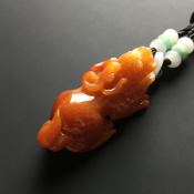 带色麒麟翡翠吊坠 尺寸: 59.5-29.5-15.5mm