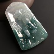 冰种阳翠山水牌 翡翠吊坠 尺寸46-30-7毫米