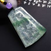 冰种飘绿花山水牌翡翠吊坠 尺寸54-36-5毫米