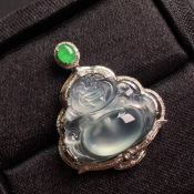 冰种飘花天然佛翡翠吊坠 尺寸:31.5-34.5-6毫米