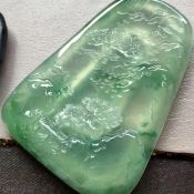 冰飘绿花山水 翡翠挂件 尺寸52*5.6