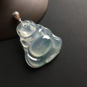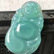 冰种飘花笑佛 翡翠吊坠 尺寸32-28-5.2毫米
