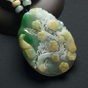 巧雕双彩花开富贵 翡翠吊坠 尺寸46-33-11毫米